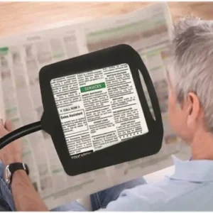 Practica lupa con pie flexible que permite leer o hacer manualidades en mesa o sentado en una silla. Con gran tamaño de pantalla luces led.